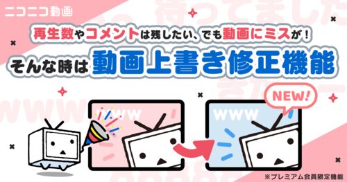 PC版ニコニコ動画のアップデートがこの夏あるらしいのだが、コメントや再生数はそのままで、動画を上書き修正することができるようになるらしい。 blog.nicovideo.jp まじか……。本当にそれが可能になるなら、投稿した後に気づいて、頭抱えることがなくなるか…